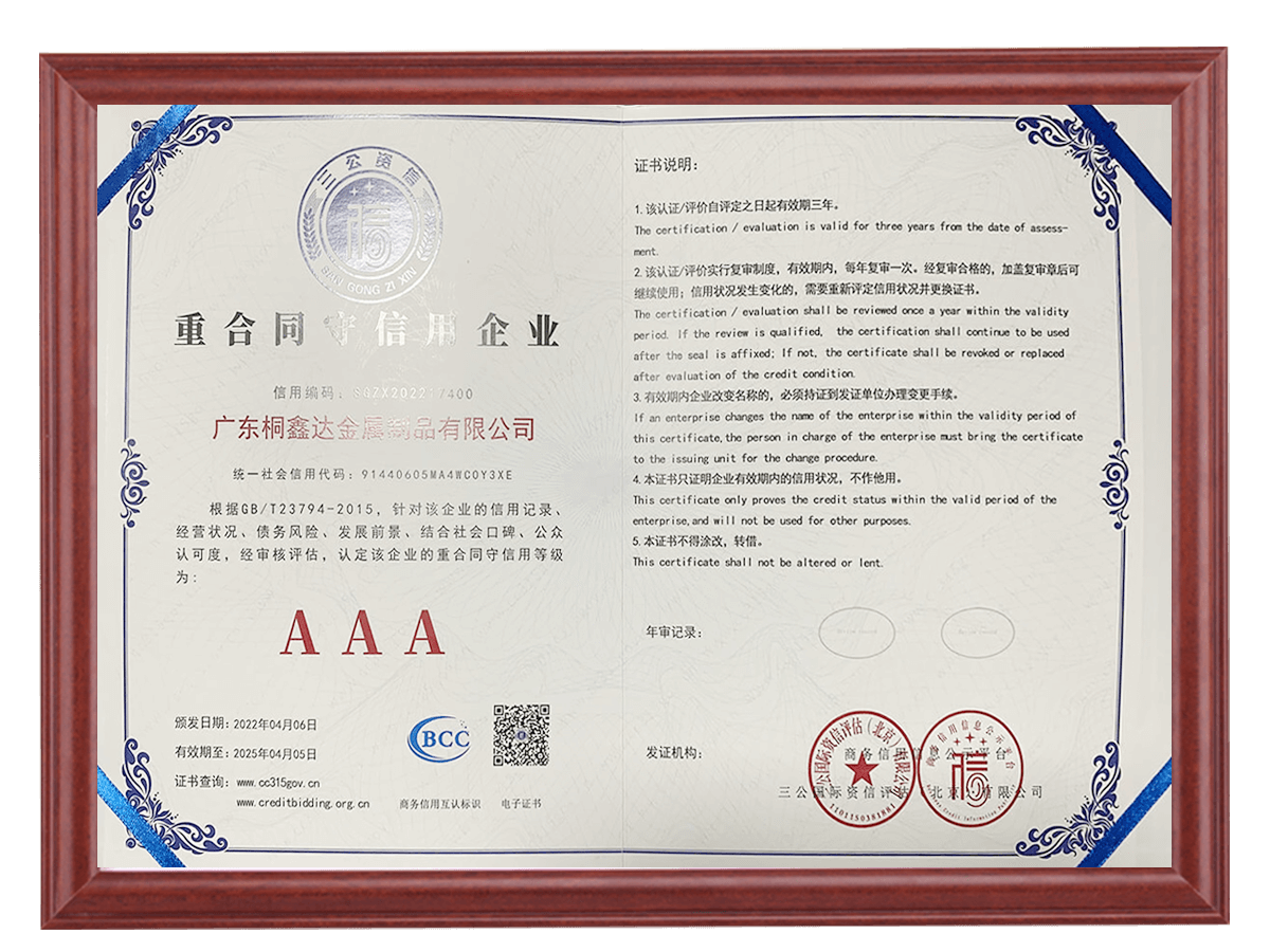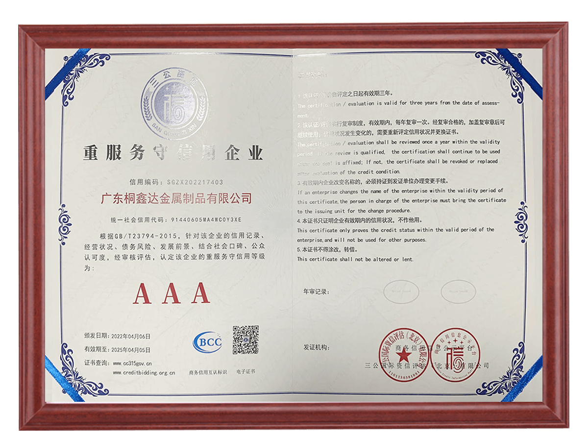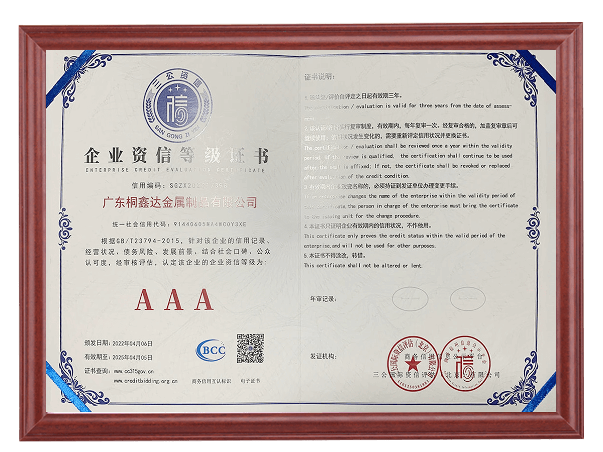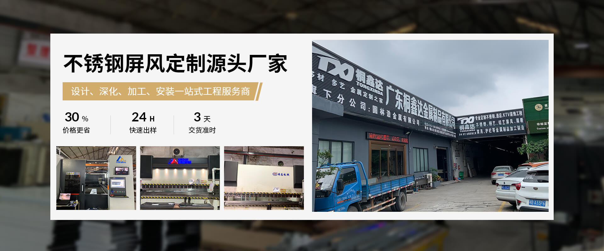 廣東桐鑫達(dá)金屬制品有限公司成立于2014年,是一家專(zhuān)注于高檔酒店/夜總會(huì)/高級(jí)場(chǎng)所金屬制品設(shè)計(jì)、生產(chǎn)及銷(xiāo)售安裝工程的企業(yè)。公司自成立以來(lái),始終堅(jiān)持以“質(zhì)量求生存,誠(chéng)信求發(fā)展”為宗旨,不斷滿足客戶對(duì)高端品質(zhì)的需求,努力成為國(guó)內(nèi)行業(yè)的佼佼者。