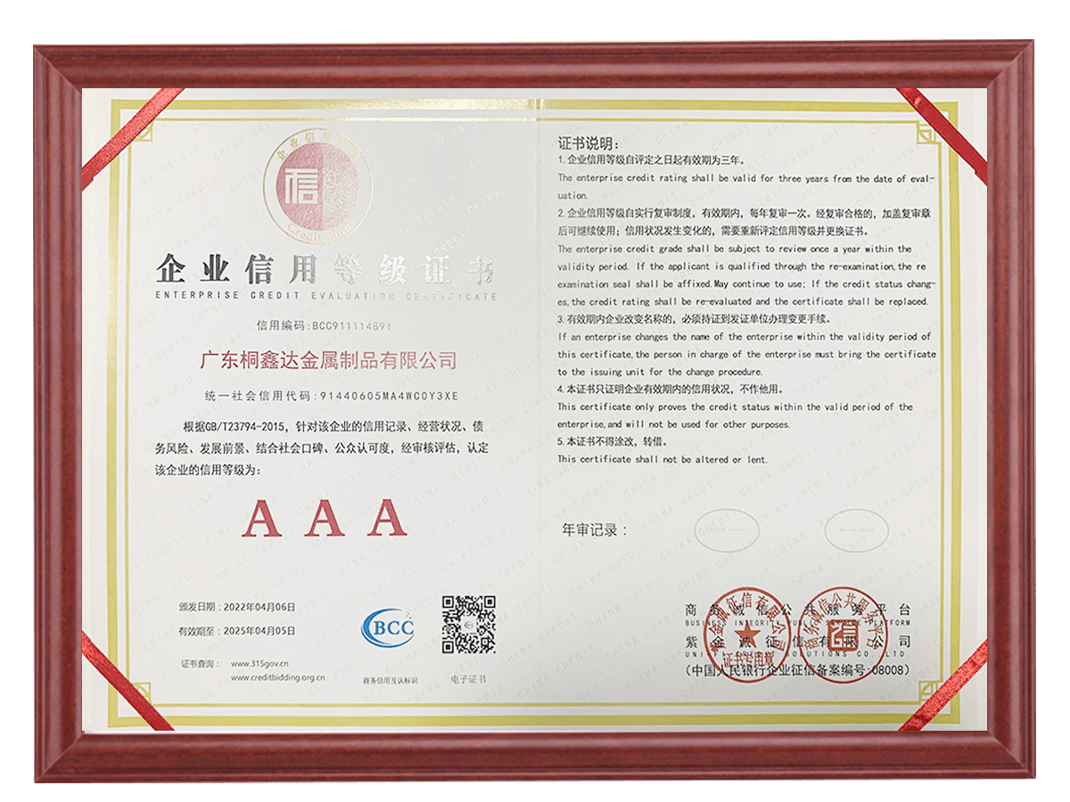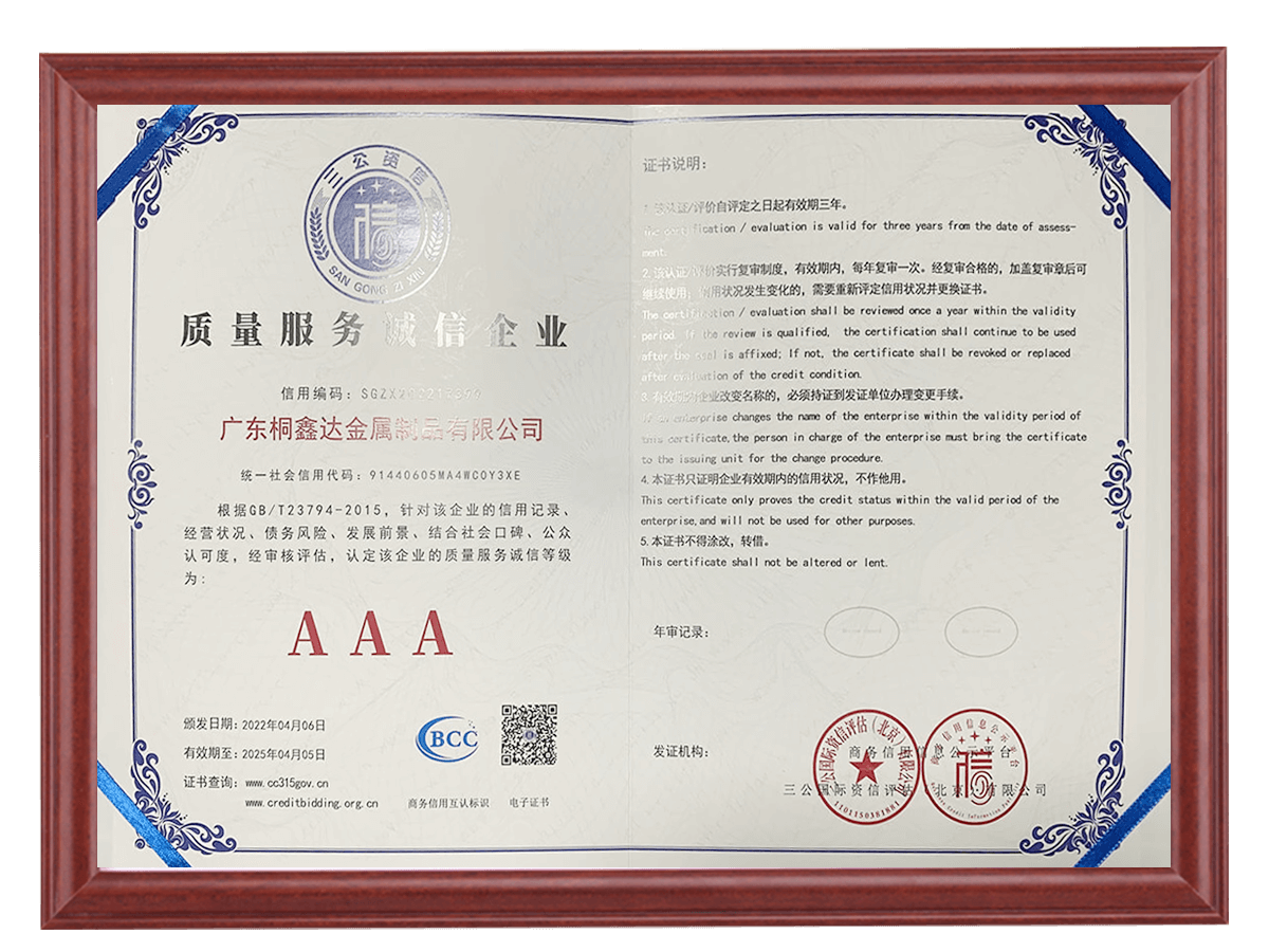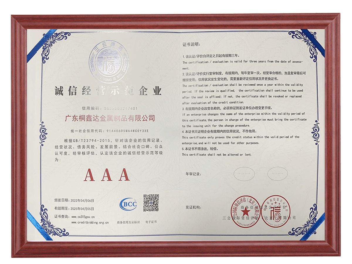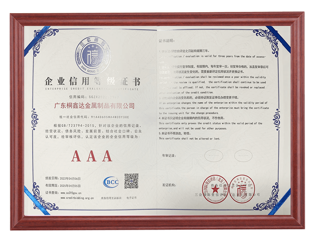 廣東桐鑫達(dá)金屬制品有限公司成立于2014年,是一家專(zhuān)注于高檔酒店/夜總會(huì)/高級(jí)場(chǎng)所金屬制品設(shè)計(jì)、生產(chǎn)及銷(xiāo)售安裝工程的企業(yè)。公司自成立以來(lái),始終堅(jiān)持以“質(zhì)量求生存,誠(chéng)信求發(fā)展”為宗旨,不斷滿足客戶對(duì)高端品質(zhì)的需求,努力成為國(guó)內(nèi)行業(yè)的佼佼者。
